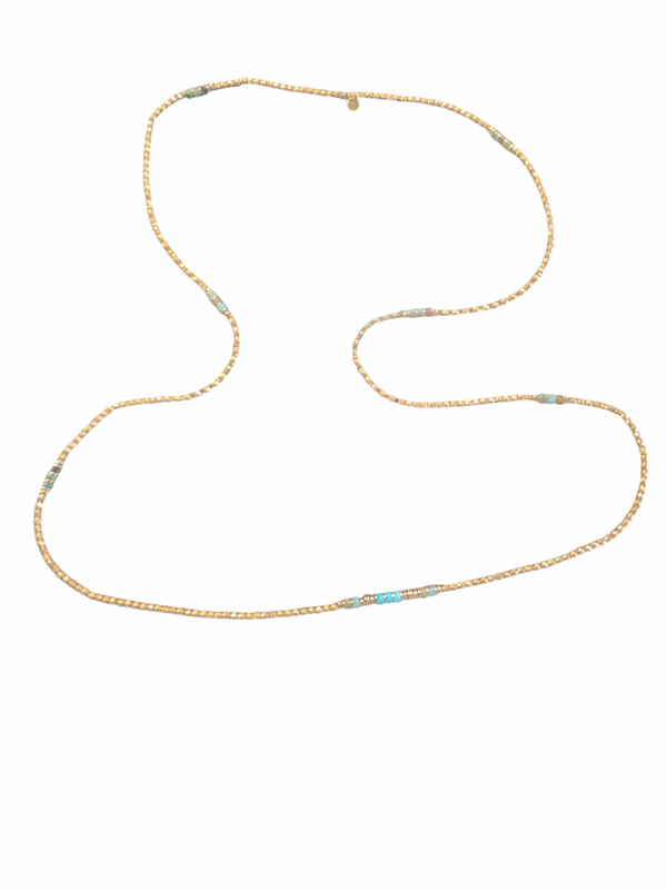 Ce bijou est un collier multi-rangs pouvant se porter autour du cou en sautoir, en 2 rangs ou en bracelet 6 tours.