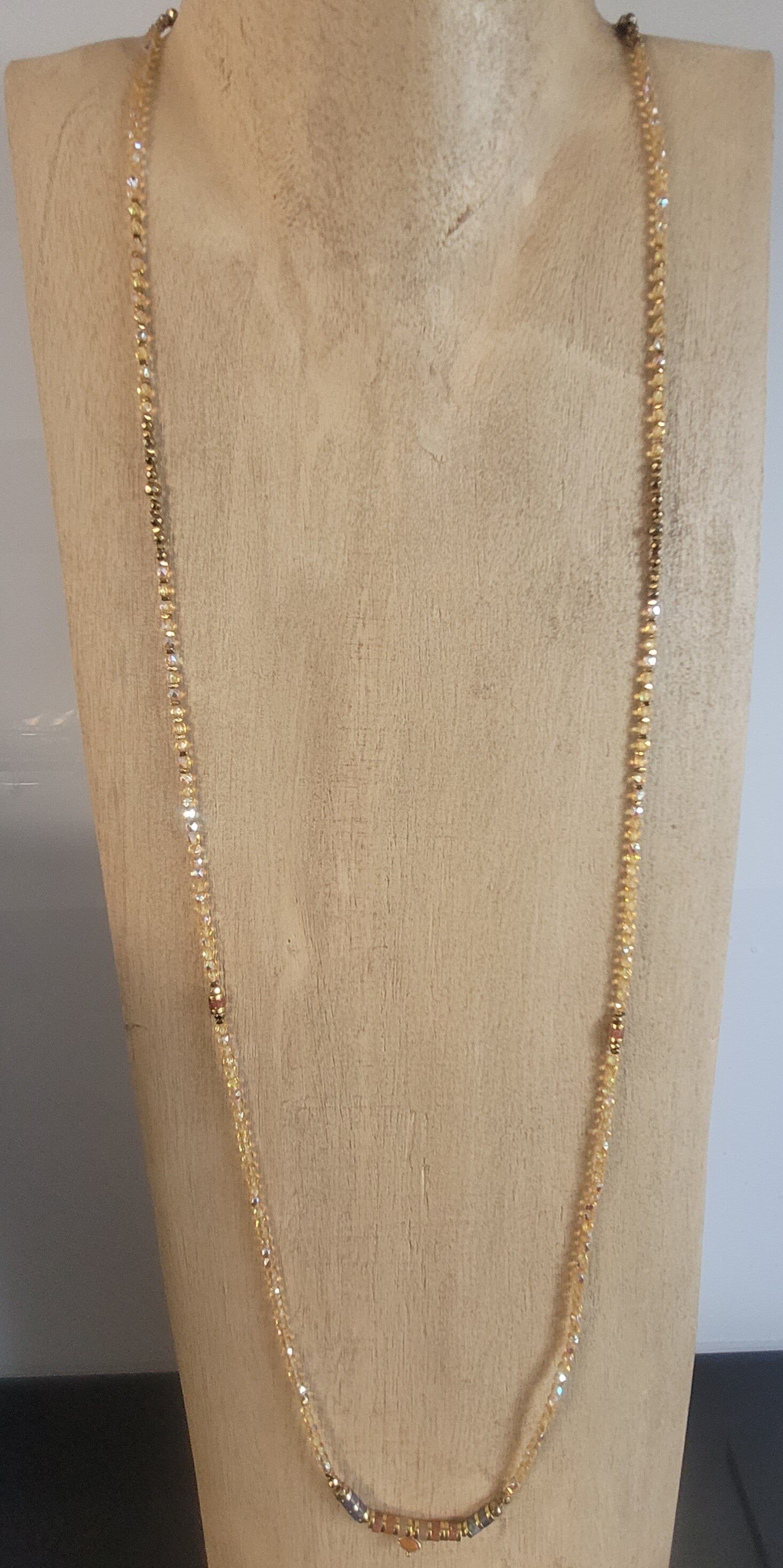 Il est composé de perles facettées de Bohème et d' intégrations de pierres fines, Lapis lazuli, Agate jaune, Gold sand, Hématite.