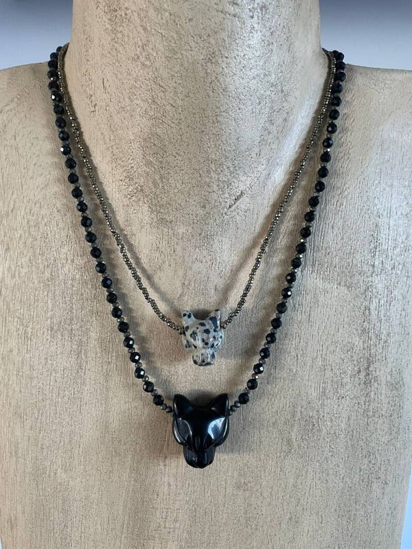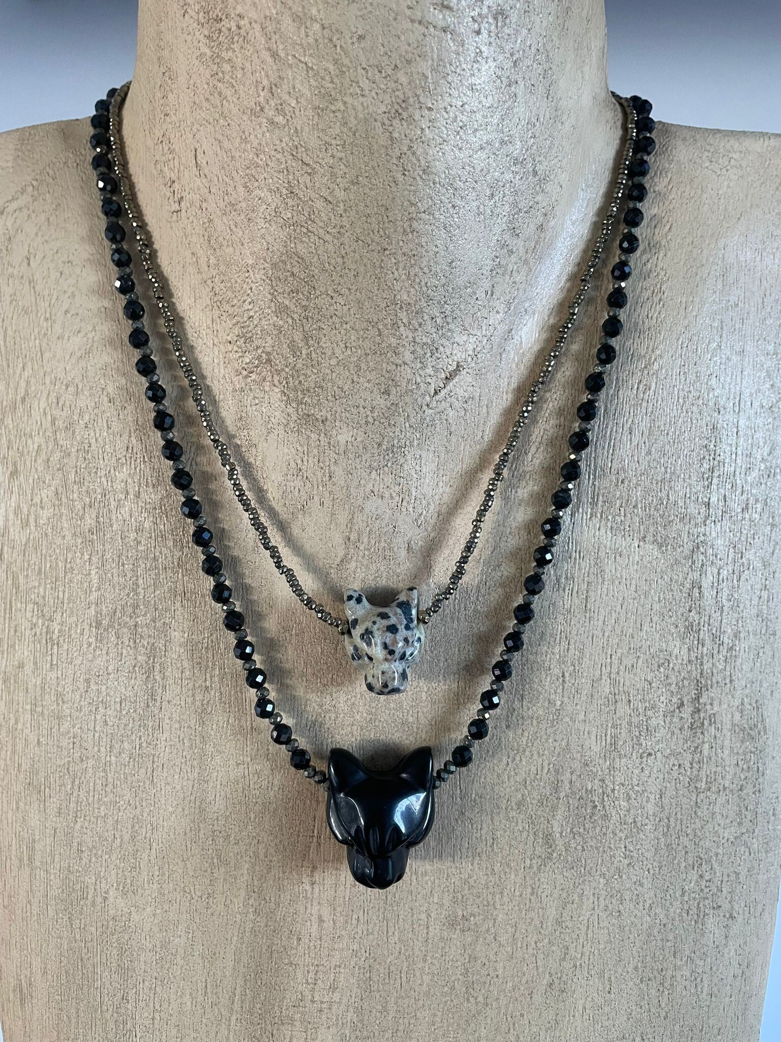 Collier Panthère noire est un ras de cou en Tourmaline noire et Pyrite facettées.