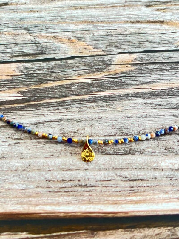 Collier ras de cou HEART and FLOWER Sodalite bleu - orange