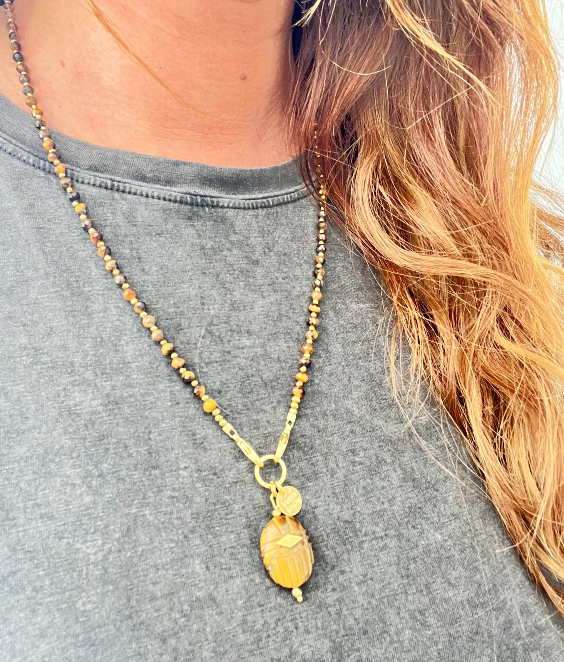 Collier Scarabée Oeil de Tigre