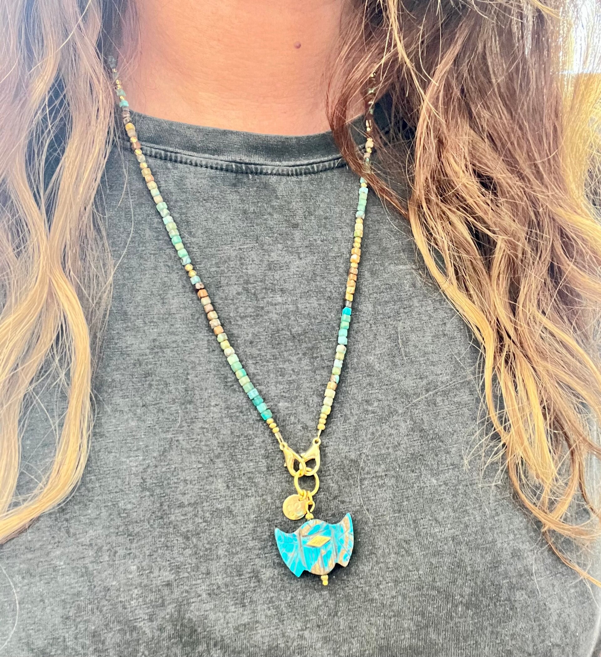 Pendentif scarabée ailé en Turquoise cuivré ( 25x15 mm).