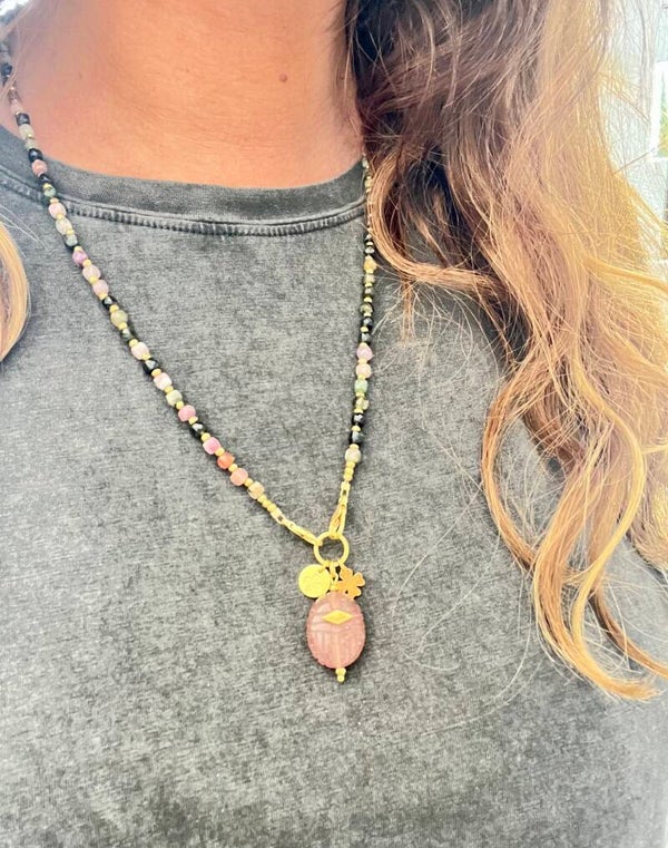Collier Scarabée Quartz fraise