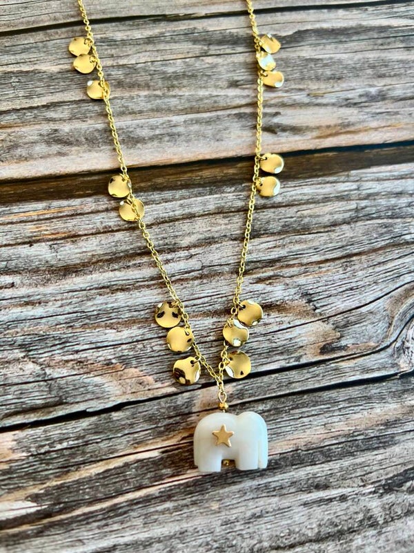 Collier Eléphant Agate blanche