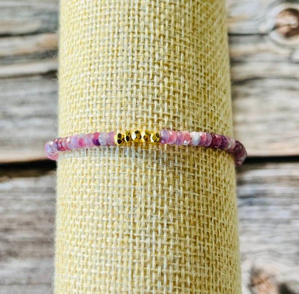 Elégant et raffiné, ce bracelet en Tourmaline rose naturelle facettée illumine le poignet de ses reflets délicats. Les rondelles de Tourmaline révèlent des nuances subtiles du rose poudré au mauve, réhaussées par des perles en argent sterling plaqué or ( 1 micron ) pour une touche lumineuse et durable.
